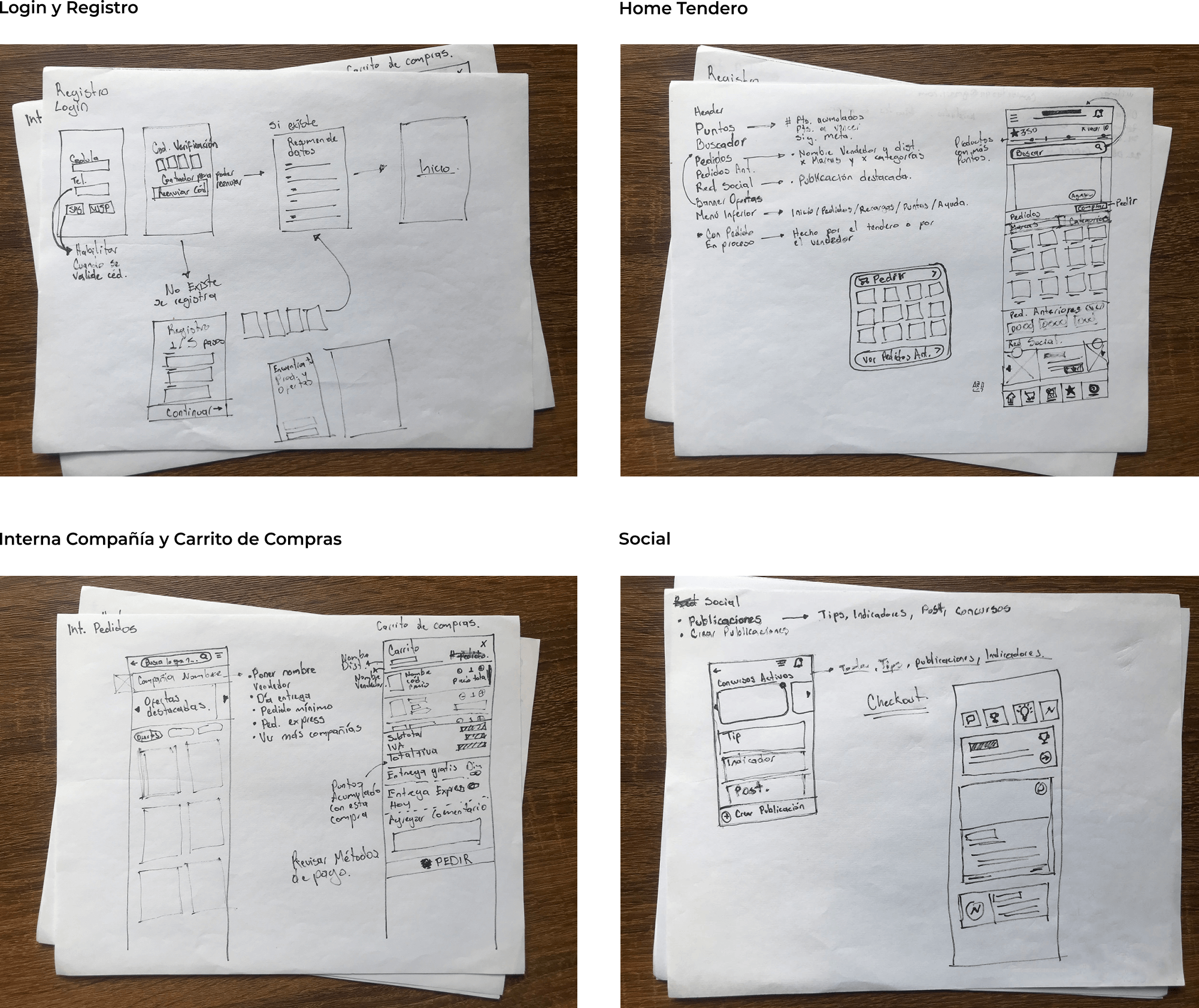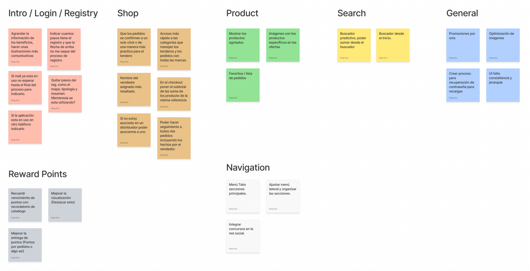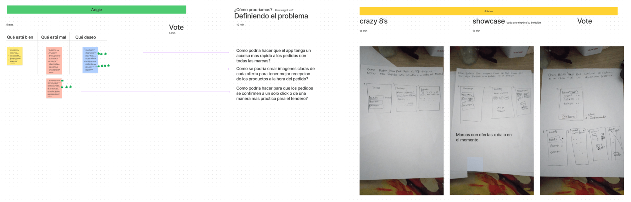 Después de encontrar esos puntos de dolor en la navegación, se realiza un workshop con el equipo de campo. Ellos cuentan con la experiencia directa en el uso de la aplicación con el tenderoque nos ayuda a entender que otros aspectos y funcionalidades se puden crear o mejorar.