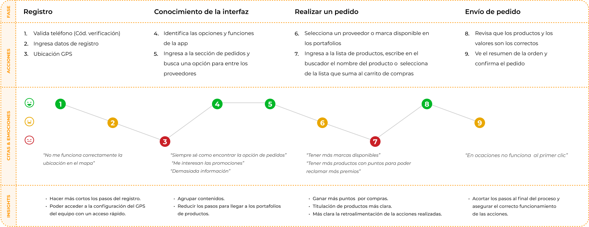 Al hacer acompañamiento con los usuarios mientras realizaban el ejercicio de hacer un pedido encontramos que en general la experiencia es satisfactoria pero en el proceso detectamos los siguientes puntos de dolor: