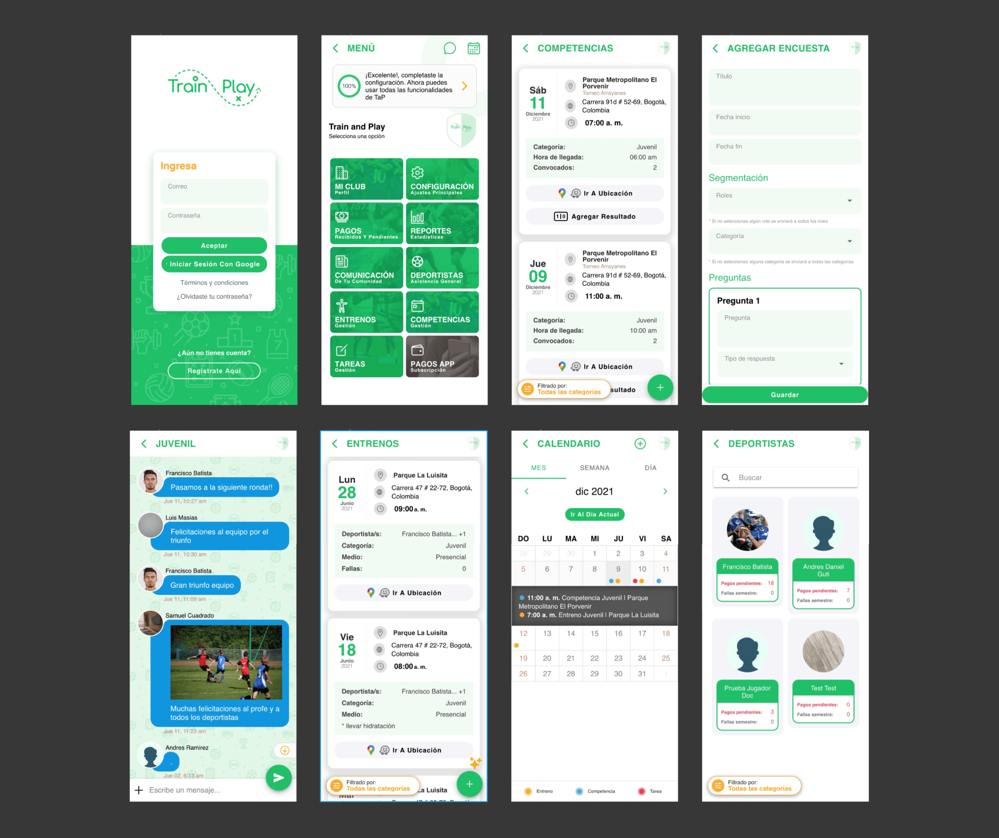 3 clubs. Usuarios: Administrativos / Coordinadores / Entrenadores / Deportistas.